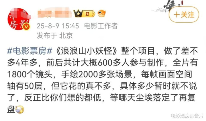 以上三部影片虽然总票房都高出了《浪浪山小妖怪》,但从制作成本和宣发支出来说,《浪浪山》用不到别人十分之一的成本,撬动了相当于他们三分之一,甚至一半的利润。